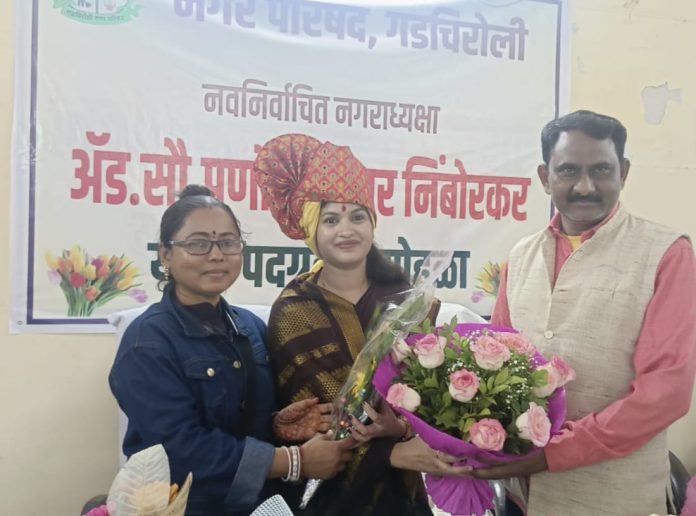 गडचिरोली, ता. ८ : गडचिरोली नगरपालिकेच्या नवनियुक्त नगराध्यक्ष अॅड. प्रणोती सागर निबोंरकर यांनी आज गुरुवार ८ जानेवारी रोजी आपल्या पदाचा अधिकृतरित्या पदभार स्वीकारला. या पदभार स्वीकार समारंभानंतर गडचिरोली ऑल मीडिया असोसिएशनच्या वतीने त्यांचे स्वागत करण्यात आले.